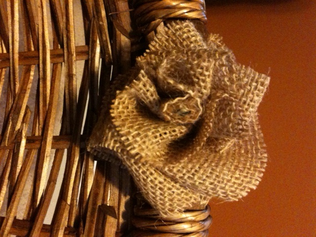 … but one BIG flower in the center. Any burlap flower making suggestions anyone? =]