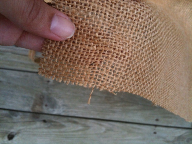 See that white thread going up the burlap? Go ahead and cut that off. Cut as close to that line as possible. (In the picture above, I would cut to the right of the white thread because I want to cut that end piece off.)