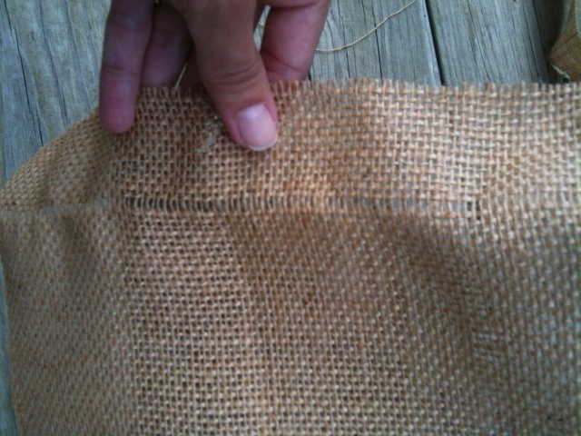 When you buy your burlap the selvage (ends) will probably by sewn down the sides like this…