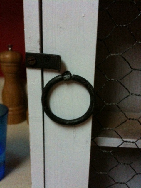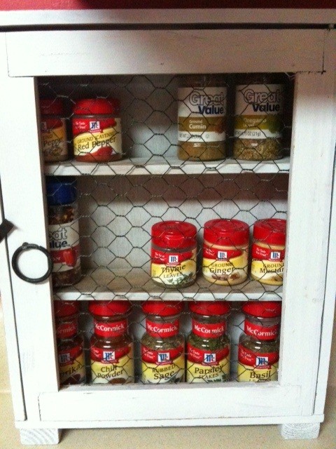 Cute, right?? All I did was take off the hardware, taped to cover up the chicken wire, and then spray painted with Krylon White*. It took me about three or four really light coats. I actually kind of like that the wood is still showing through the white. So simple but it made a huge difference.