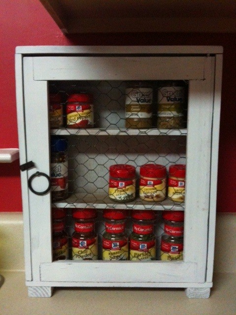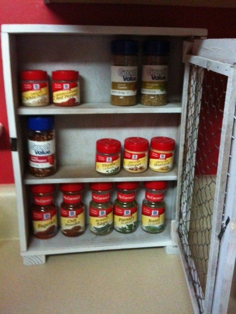On Saturday after I picked up my little sister in law we decided to work on some projects. I had gotten this really cute display shelf from Goodwill for $2.99 a while back. It’s solid wood with a chicken wire front. It had pen marks on top but it was cool and I saw potential!