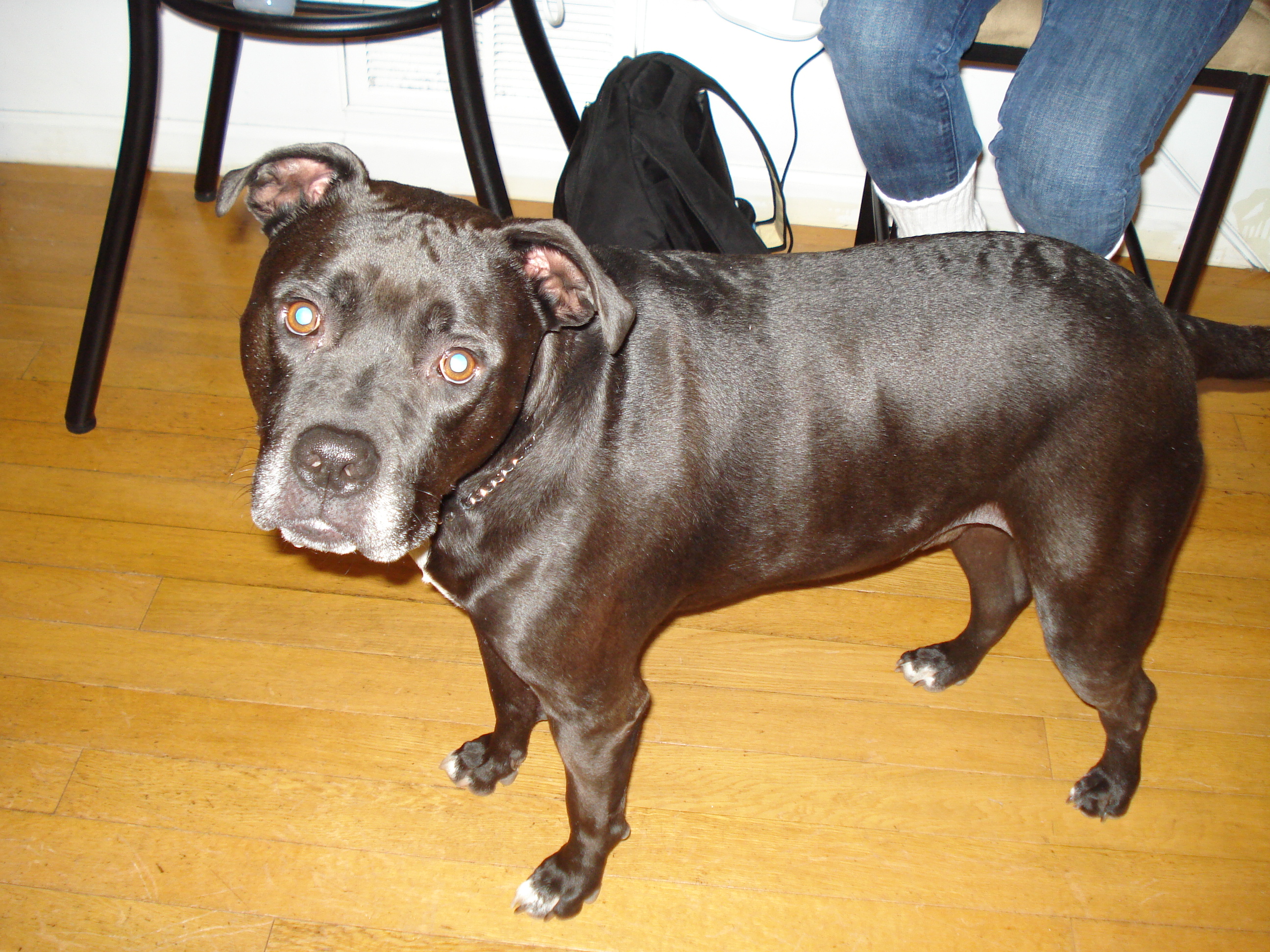 This dog really thinks he’s a lap dog. He seriously tried to get on my lap! He was really sweet. =]