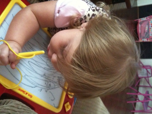 ConcentratingAt one point I had drawn something and erased it while she was looking at it, and she gave me this look like, “Oh no you didn’t!”. TOO CUTE.