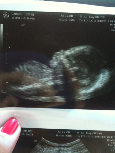 At my 18 week appointment, August 9th 2013, we found out we were having a… BOY! That ultrasound/body scan was so amazing. It is absolutely crazy how in depth the doctors can get. You can read all about it and see more pictures here.