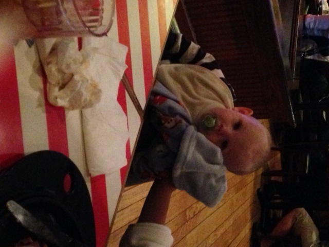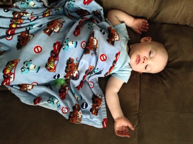 He got a little sleepy at dinner and just grabbed his blanket, stuffed it into the side of his high chair, and laid his head down. So cute! (Before he did that he had his head down (on his blanket) on the table.)