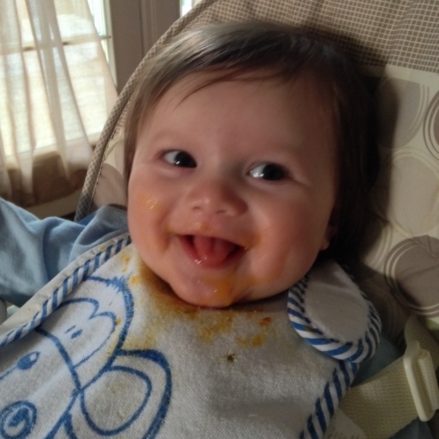 He’s still loving his baths and eating his vegetables (carrots, squash, and sweet potatoes have been a hit while green beans are a total bust [and I’ve tried three times now!]).