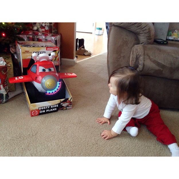 Peanut loves this little ride-on toy SO MUCH. The blades spin, light up, it plays music, etc. Hubs takes Peanut on lifts and flies him around to “patrol the dining room”. It’s the cutest. Oh, and the plane wings can move and lift up (for when you “put the plane in the hangar (aka closet)”, and the wheels steer too!