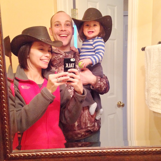 Saturday morning we all decided to head to the Dixie Deer Classic. Hubs has been many times, but this was Peanut and I’s first time going! (The in-laws first time too!) It was SUPER cold, so we bundled Peanut up really well. :] (The event was indoors, but the parking lot was jammed so we had to park pretty far and walk in.)